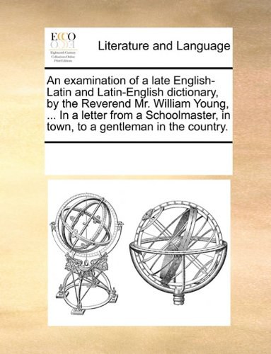 An Examination of a Late English-Latin and Latin-English Dictionary, by the Reverend Mr. William Young, ... in a Letter from a Schoolmaster, in Town,