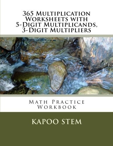 Daily Math Multiplication Practice 365 WorksheetsThis book contains 365 multiplication worksheets for practice with one multiplicand of 5 digits and one multiplier of 3 digits. These maths problems are provided to improve the mathematics skills by frequent practicing of the worksheets provided.There is nothing more effective than a pencil and paper for practicing some math skills. These math worksheets are ideal for teachers, parents, students, and home schoolers. Teachers and home schoolers use the maths worksheets to test and measure the child's mastery of basic math skills. These math drill sheets can save you precious planning time when homeschooling as you can use these work sheets to give extra practice of essential math skills. Parents use these mathematic worksheets for their kids homework practice too.You can use the worksheets during the summer to get your children ready for the upcoming school term. Designed for after school study and self study, it is also used by homeschoolers, special needs and gifted kids to add to the learning experience in positive ways. It helps your child excel in school as well as in building good study habits. If a workbook or mathematic textbook is not allowing for much basic practice, these sheets give you the flexibility to follow the practice that your student needs for a curriculum.These worksheets are not designed to be grade specific for students, rather depend on how much practice they've had at the skill in the past and how the curriculum in your school is organized. Kids work at their own level and their own pace through these activities. The learner can practice one worksheet a day, one per week, two per week or can follow any consistent pattern. Make best use of your judgement.