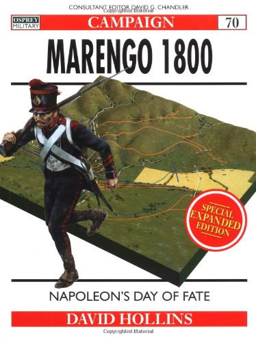Osprey's study of the campaign at Marengo in 1800 during the Napoleonic Wars (1799-1815). Having returned from Egypt and seized power as First Consul, Napoleon led the Army of the Reserve against the Austrian Army besieging Genoa. After a period of skirmishing and manoeuvring, Melas, the Austrian commander, launched a surprise attack on the morning of 14 June. The attack initially drove the French back to Marengo village and, despite committing the Consular Guard, by 3pm the French were retreating. Believing he had won, the wounded Melas left the field to his Chief-of-Staff, Zach. The timely arrival of Desaix's Division led by Kellerman's cavalry and the 9e Légère threw the Austrians into confusion, turned the battle in Napoleon's favour, thus securing his position as First Consul. It could have been very different.