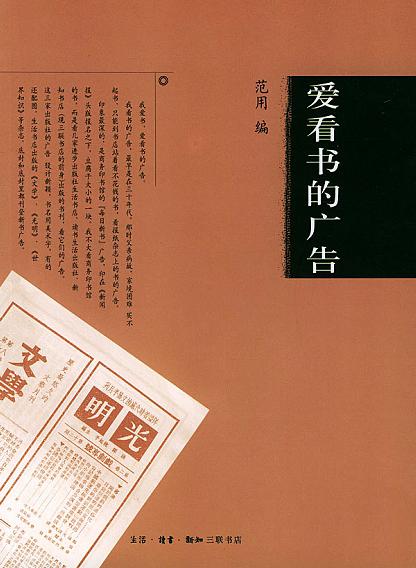 范用先生是三联的老前辈,故此加一星。全书近似于作者摘录的广告文字、图片资料的汇编,有史料价值。鲁迅先生的广告在一众之中最为突出,老舍先生的广告很幽默。也学着范用先生,读报纸的时候注意看新书广告,摘录在小卡片上(后辈应该学习老前辈怎么写广告)