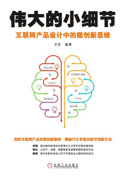 本书从分析大量的互联网产品细节创新设计案例入手,总结出一套对实际工作具有指导意义的细节创新方法论,再对细节创新的实际作用做了研究,为进行怎样的细节创新才有价值这一问题树立了评判标准。全书共9章。第1章列举了三个案例,由此引出本书需要回答的两个主要问题——“细节创新能否有理论指导”和“什么样的细节创新才是有价值的”。第2~5章分门别类地归纳总结了四种细节创新的成熟方法,包括用户行为预判、场景化设计、恰到好处的提示、让得到比预期更多,即对第壹个问题的解答。第6章针对创新的“抄袭”和成本控制问题进行了探讨,并分析了传统行业中同样适用本书方法论的细节创新案例,即对第壹个问题的扩展解答及对第二个问题的简单回答。第7~9章通过探讨创新在企业发展战略中的地位与价值、细节创新的取舍与优化组合等问题,对初创企业和成熟企业的创新分别提出了解决方案,即对第二个问题的深度分析解答。本书是作者经过多年收集、总结、思考后的结晶,对于创新活动兼具较高的理论价值和实用价值,各行各业均值得借鉴和参考,尤其适合互联网公司产品经理、创业者等阅读。