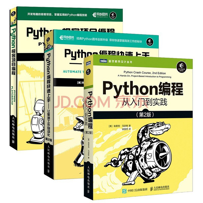 Python编程三剑客:Python编程从入门到实践+快速上手+极客编程(套装3册,京东)