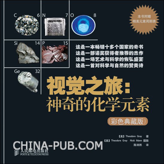 《视觉之旅:神奇的化学元素(彩色典藏版)》是theodore gray的一部科普杰作,其写作过程共花费7年时间。《视觉之旅:神奇的化学元素(彩色典藏版)》出版后广受赞誉,仅英文版就在1年多时间里销售了20余万册,同时被翻译成了15种文字。