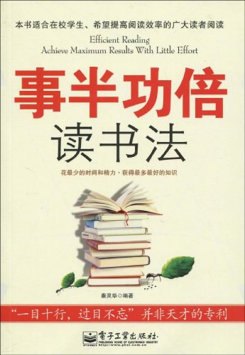 《事半功倍读书法》整理了古今中外名人的读书法。如朱子读书法、鲁迅的“跳读法”、华罗庚的“厚薄法”,以及作者根据自己的经验总结出来的如模型读书法、先读序文法、“SQ3R”读书法、五步读书法等。作者用亲身体会向读者介绍了如何提高阅读能力的技巧,《事半功倍读书法》非常值得一读。