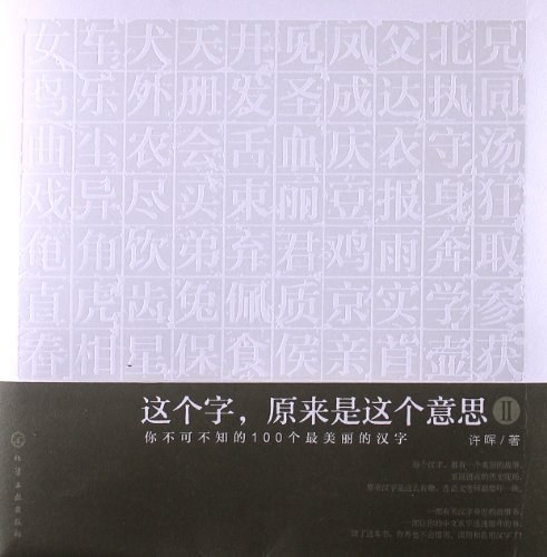 《这个字,原来是这个意思2:你不可不知的100个最美丽的汉字》是一本从汉字字形出发,来研究其词义源流的书。作者精选了100个最美丽的汉字,不仅具体展示了每一个汉字字形的演变,而且由汉字字形入手,详细讲解了与此汉字相关的古代社会的生活形态、日常礼仪和文化常识,以此带领读者回到历史现场,寻找中国文化的根。