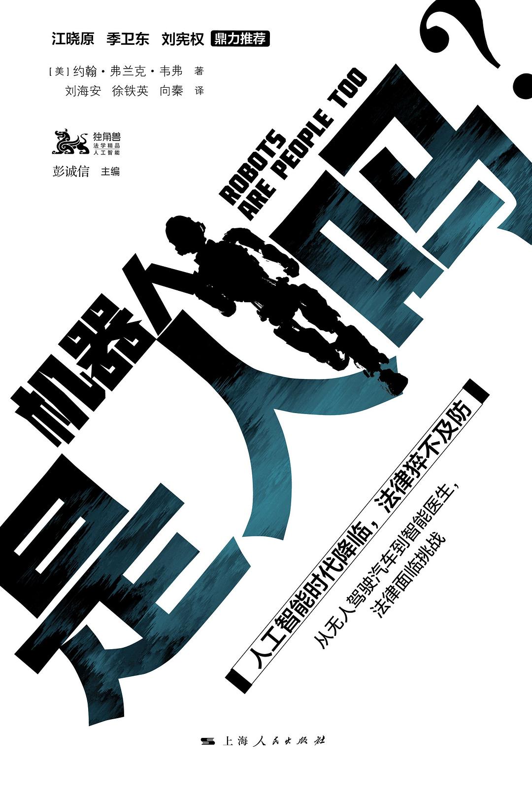 霍金说:“由于生物学意义上的限制,人类无法赶上技术的发展速度。人类无法与机器竞争,并会被取代。全人工智能的发展可能导致人类的终结。”机器人的崛起,法律将如何应对?在《机器人是人吗?》一书中,美国律师约翰•弗兰克•韦弗探讨了这个引人入胜的新故事的法律层面,从无人驾驶汽车发生事故时的具体法律问题,到正在向法律本身提出挑战的基本问题。”