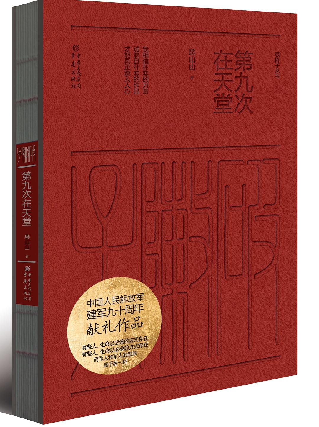 《第九次在天堂》是结合2017年中国人民解放军建军90周年,开发的军旅散文系列丛书“破阵子”系列中的一本。“破阵子”系列以中国当代最著名的军旅作家为主要创作阵容,这些作家均曾获得茅盾文学奖或者五个一工程奖、解放军文艺奖,均为中国一线的实力作家。作品描述军旅人生,体现军人的家国情怀,展现中国军人气质、理想与追求,书写新时期中国军人的忠勇与豪迈。