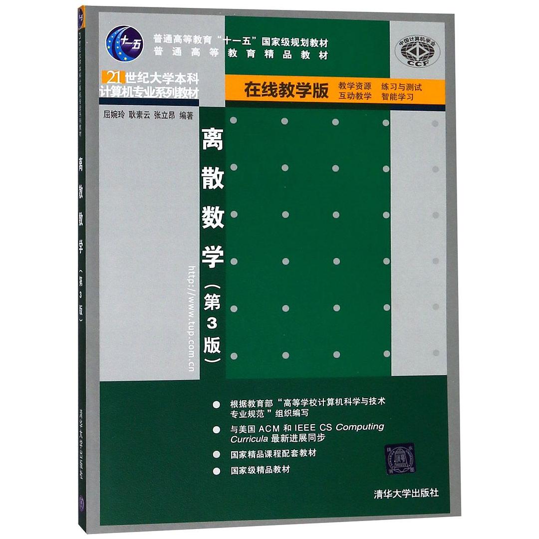 本教材是参照ACM和IEEE 最新推出的 Computing Curricula,根据教育部高等学校计算机科学与技术教学指导委员会最新编制的“高等学校计算机科学与技术专业规范”中制定的关于离散数学的知识结构和体系撰写的.全书共 14章,内容包含证明技巧、数理逻辑、集合与关系、函数、组合计数、图和树、初等数论、离散概率、代数系统等.本书体系严谨,文字精练,内容翔实,例题丰富,注重与计算机科学技术的实际问题相结合,并选配了大量难度适当的习题,适合教学.另外,本书有配套的习题解答与学习指导等教学辅导用书,以及用于课堂教学的 PPT 演示文稿和在线数字资源等,以满足教学需要,本书适合作为高等学校计算机及相关专业本科生“离散数学”课程的教材,也可以作为对离散数学感兴趣的人员的人门参考书.