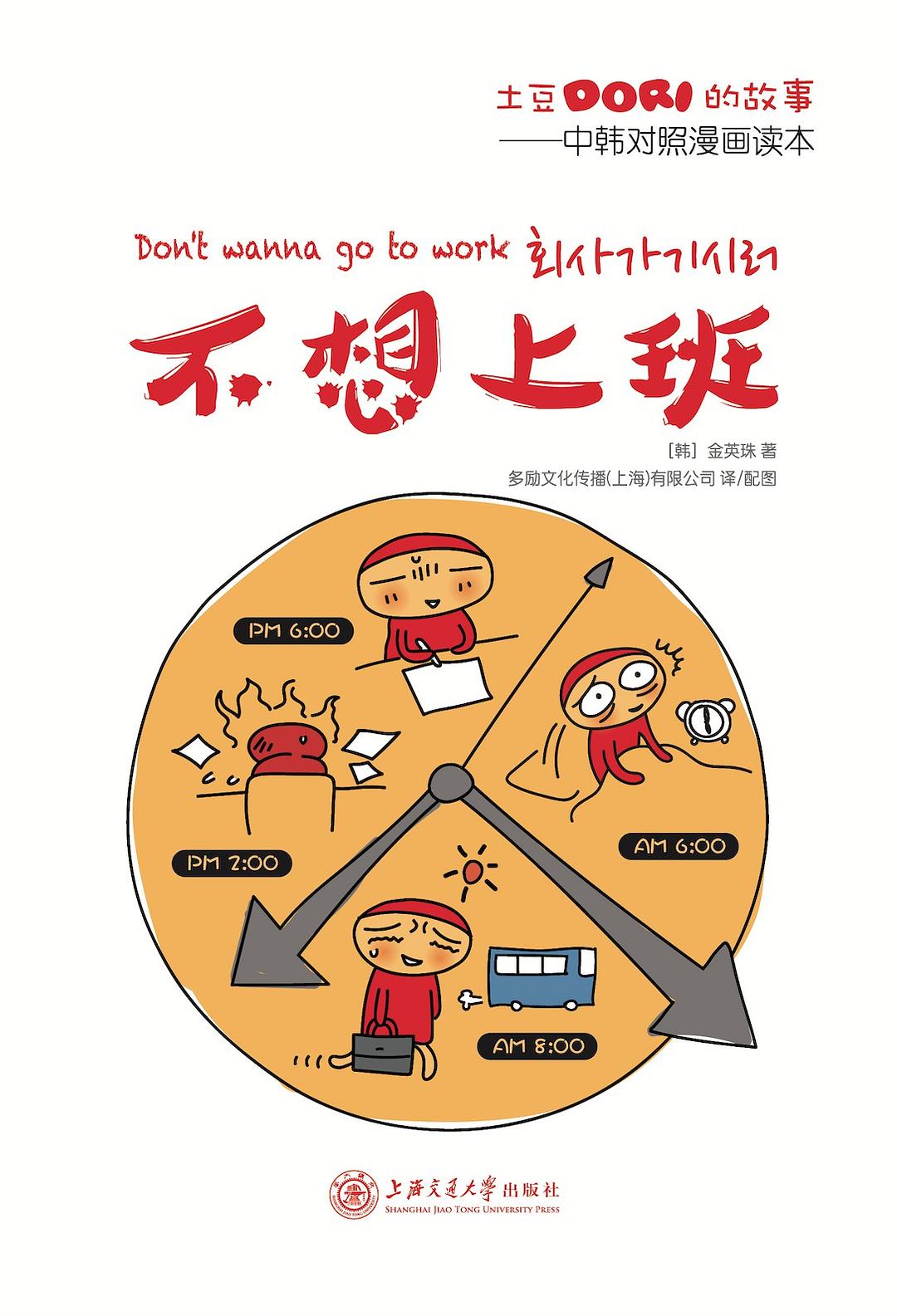 《不想上班》是土豆Dori“不想系列”双语漫画读本之一。卡通萌星土豆Dori(Gamzadori),诞生于1998年11月11日,天蝎座,多愁善感、清纯满分,各方面都很优秀。是的,你没有看错,他真的是一枚如假包换的土豆,而且还是一枚有着神奇际遇的土豆。