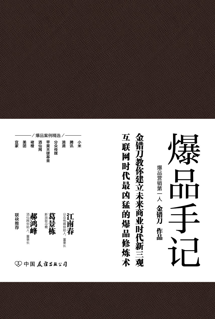 互联网时代,一切都被颠覆。 B2B、B2C、O2O等商业模式的建立,对传统企业构成了巨大冲击。人们的生意往来逐渐从线下转移到了线上,传统的定位理论逐渐失效,依靠爆品引爆市场才是王道;传统企业经营多年的渠道营销模式正遭遇前所未有的阻力,网上商城正成为众多商家角逐血拼的主要战场。 在互联网的黑暗森林里,一切传统的商业模式统统失效,一场依靠爆品点燃市场、引爆市场、占据市场的营销革命正悄然兴起。