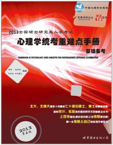 《2013全国硕士研究生入学考试心理学统考重难点手册基础备考》是一本心理学考研人自己的书!专为参加312心理学统考的考生编写,内容涵盖心理学统考的全部科目,将大纲中的重点难点部分一一详解,是各门心理学专业教材的有力补充。经无数考生证明,该书也同样适用于心理学专硕统考。