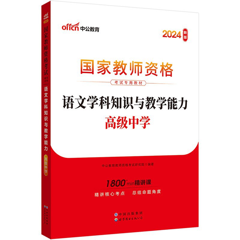 《中公版·2024国家教师资格考试专用教材:语文学科知识与教学能力(高级中学)》,全书依据考题情况,设有三部分:第一部分为学科知识,包括现代汉语、古代汉语、文学常识、古诗词鉴赏四章内容;第二部分为课程知识与教学设计,主要介绍了《普通高中语文课程语文课程标准(2017年版2020年修订)》、语文教材概述及其使用、高中语文教学设计等内容;第三部分为教学实施,主要针对课堂教学常见问题及其处理技巧、案例分析等相关知识进行讲解。