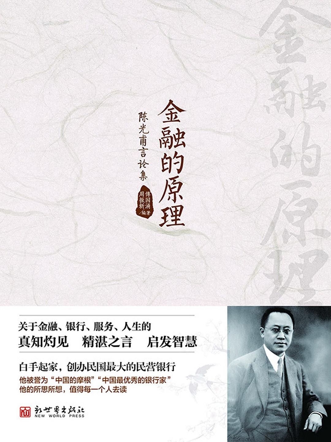 本书为陈光甫自1915年至1948年期间在各场合所发表的言论集结,内容涉及人生哲学、服务管理、银行哲学、金融改革等多个方面,涵盖了陈光甫前半生的所思所想,对现代企业家和银行从业者具有极大的借鉴与启示。