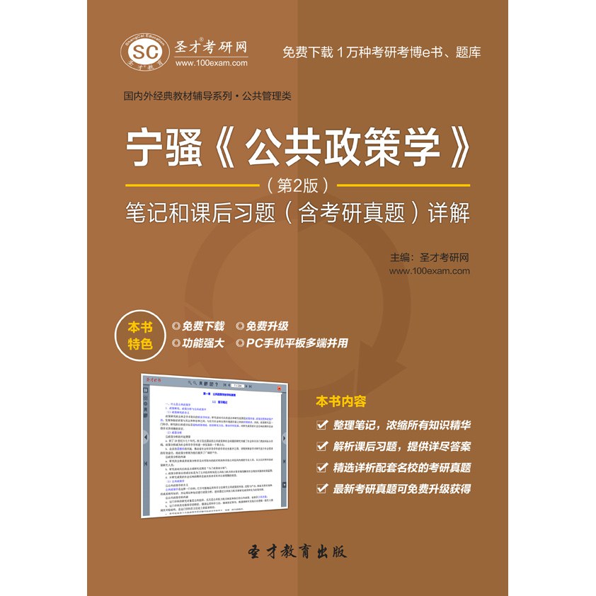 圣才学习网│公共管理类(www.100xuexi.com)提供宁骚《公共政策学》等各种公共管理类经典教材辅导方案【网授精讲班、多媒体e书、多媒体题库等】。本书特别适用于参加研究生入学考试指定考研参考书目为宁骚主编的《公共政策学》的考生,也可供各大院校公共管理专业的师生参考。