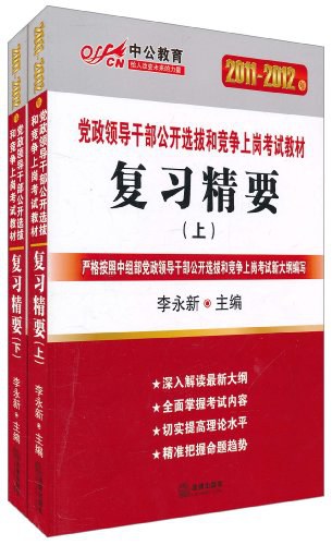 《党政领导干部公开选拔和竞争上岗考试教材:复习精要(2011-2012•中公版)(套装上下册)》是集数位中公教育公选研究资深专家和名牌教师精心打造而成的!编写教师长期从事党政领导干部公开选拔和竞争上岗试题研究与授课工作,信息全面,经验丰富,对公选考试命题趋势分析精准,使备考的领导干部能够真正做到掌握考试规律,融会贯通,成竹在胸,真正为备考的领导干部指点迷津。