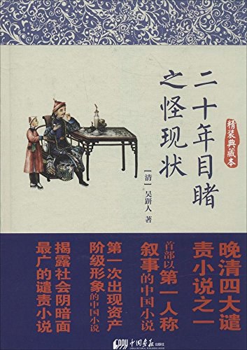 《二十年目睹之怪现状》是晚晴四大谴责小说之一,是清代小说家吴趼人的代表作。自1903年始在梁启超主编的《新小说》上连载,于1909年完成,共一百零八回。小说以“九死一生”为主角,从他为父亲奔丧开始,到经商失败结束,把20年来的所见所闻贯穿起来,是一部带有自传性质的小说。这部小说涉及的社会范围非常广,上自部堂督抚、贪官污吏,下至讼棍劣绅、奸商钱虏、洋奴买办、江湖术士、洋场才子等,反映了中法战后中国官场、商场、以及洋场的无数怪现状,揭露了晚晴半封建半殖民社会的黑暗现实,展示了一幅清王朝崩溃前夕的社会画卷。