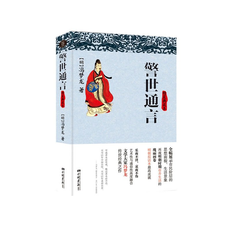 《警世通言》为明末冯梦龙所编写的话本小说集,与《喻世明言》、《醒世恒言》合称为“三言”。它由宋元时期民间说话人的底本加工编辑而成,或描写男女青年的婚姻与命运,或揭示人们对功名利禄的追求和人生感悟,或描绘世间的奇事冤案与怪异世界,展现了当时市民阶层的思想面貌、情趣爱好、生活景象等等,构筑了自己独特的艺术世界。与早期的“话本”相比较,《警世通言》在语言、文体和结构等方面都有了很大的变化和发展,为我们了解和研究宋元时期的社会提供了丰富和翔实的书面资料,也使得通俗文学达到了社会认可的程度,是古代白话短篇小说的巅峰之作。 乐而不淫、哀而不伤。