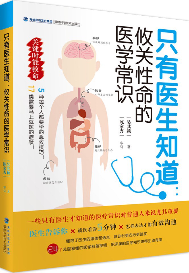 一般民众与医疗专业人士的思维有非常大的不同。许多医生认为应该是社会大众需要理解的医学常识,事实上很多老百姓却并不清楚。医生在跟每位病患及家属解释病情时,往往需要花很多的时间重复解释相同的概念。再加上医院里的病患极多,病患往往无法充分全面的了解与和自身疾病相关的医疗常识。本书中,作者将告诉你攸关性命的关键医学常识,包括身体出现何种症状时该提高警觉并迅速就医、助人助己的紧急救命术详细解析、外伤不适的即刻处理原则、以及日常生活中病痛不适的缓解与预防之道。了解这些医疗知识,可以有效减轻80%的疼痛并能及早发现那些可能威胁生命的潜在危机!