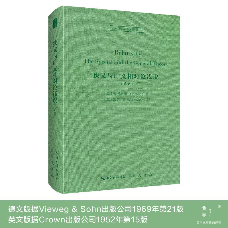 本书是爱因斯坦(Einstein,1879—1955)为其相对论所写的普及本,写于1916年,德文版1917年出版;英译版,1920年由罗森(Robert Lawson,1890—1960)翻译出版。本次影印,德文版据Vieweg & Sohn出版公司1969年第21版;英文版据Crown出版公司1952年第15版,该版是爱因斯坦生前最后的英文版,书前有其对第15版的“说明”。