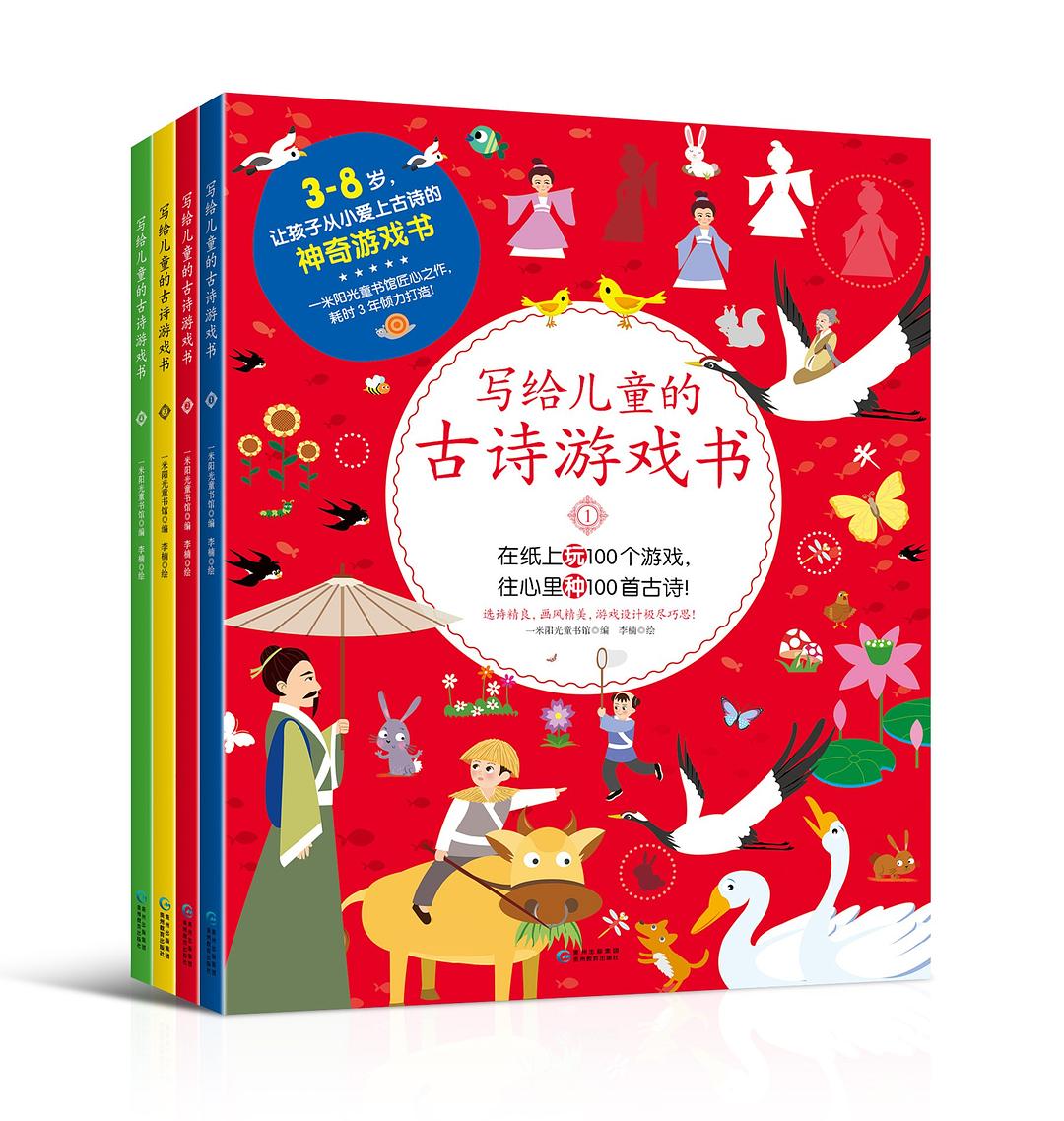 《写给儿童的古诗游戏书》,精选适合3-8岁儿童诵读的古诗100首(带注音),每首古诗配有一幅手绘插画、一个专注力互动游戏。插画风格稚朴明亮,适应儿童心理。专注力游戏设计源自古诗的含蓄意象,切入巧妙,种类丰富,用古诗喂养专注力、想象力、思维力、创造力,互补中西方教育特色。