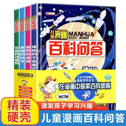 儿童漫画百科问答 全4册 神秘的宇宙星空 奇妙的身体 神奇的科学可爱的动植物十万个为什么少儿百科全书科普6-10-12岁课外阅读书籍