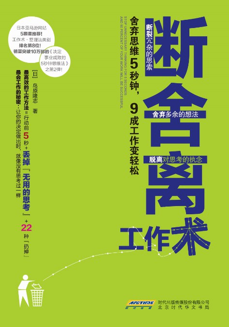 书中提出“舍弃思维5秒钟,九成工作变轻松”的理念,旨在让我们在平时的生活中, 特别是工作中,发现并停止“无用的思考”,让自己的思维,在行动前的5秒,来一次“断、舍、离”。同时,通过神奇的22种“扔掉”,你会发现,9成的工作量都被你搞定,这一切是如此的简单而又疯狂。