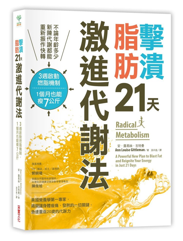 怎麼吃才能重新喚醒代謝系統?破解omega-6、omega-3的攝取迷思、告訴你被忽略的膽囊膽汁重要性等等,透過21天飲食規劃,讓細胞變好、增加燃脂效率。