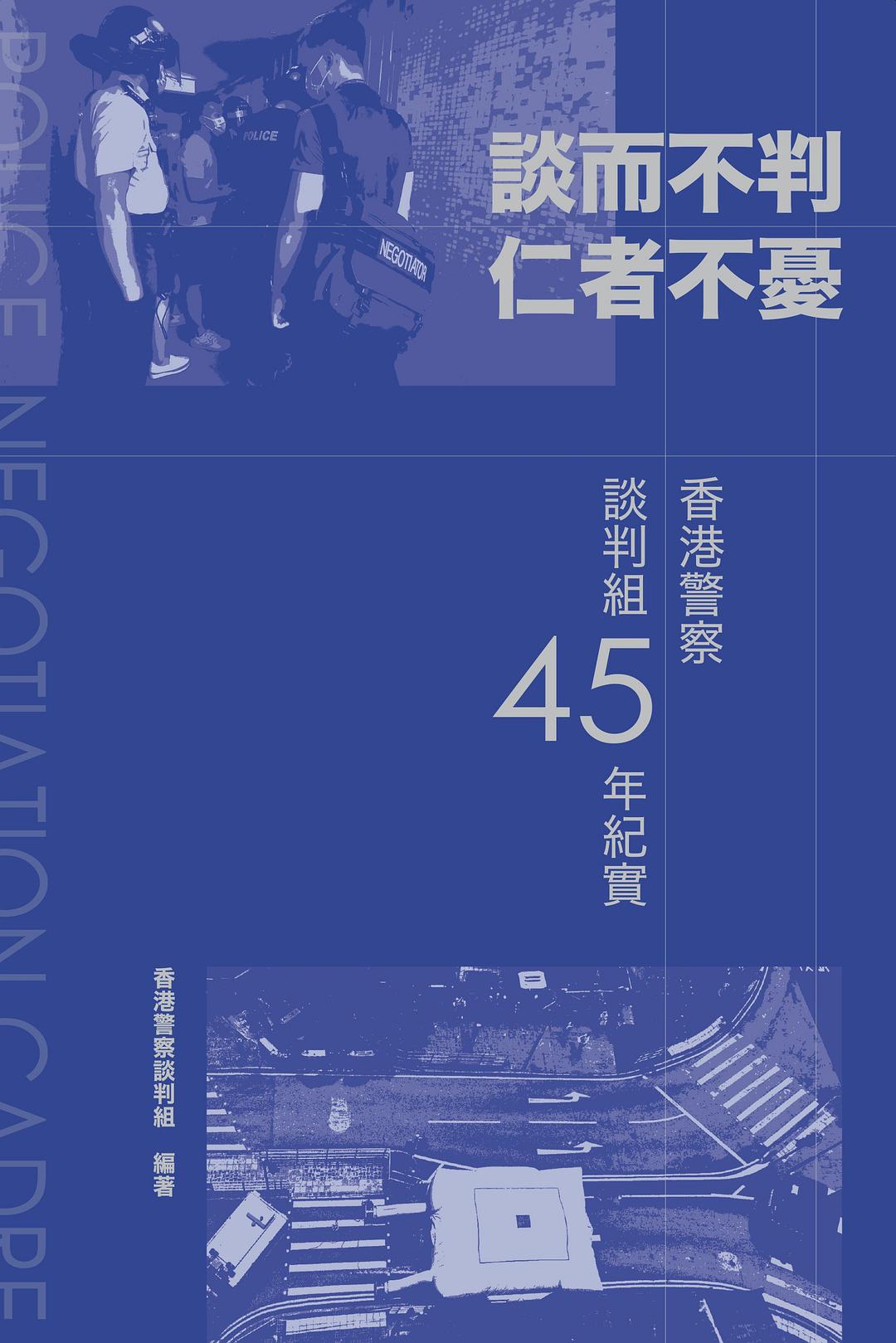 《談而不判 仁者不憂——香港警察談判組45年紀實》是香港警察談判組成員編著的紀實文集,除介紹談判組的發展歷程與職能,也從不同角度展示了談判組成員「談而不判」的工作內容。書中收錄了談判組參與處理的大量真實個案,作者們以第一人稱視角還原現場情境,並提出自己的反思和領悟。本書資料詳實,語言質樸,讓讀者可以瞭解談判組這個紮根於香港社會、拯救生命於危難卻少為人知的「神秘」組織。