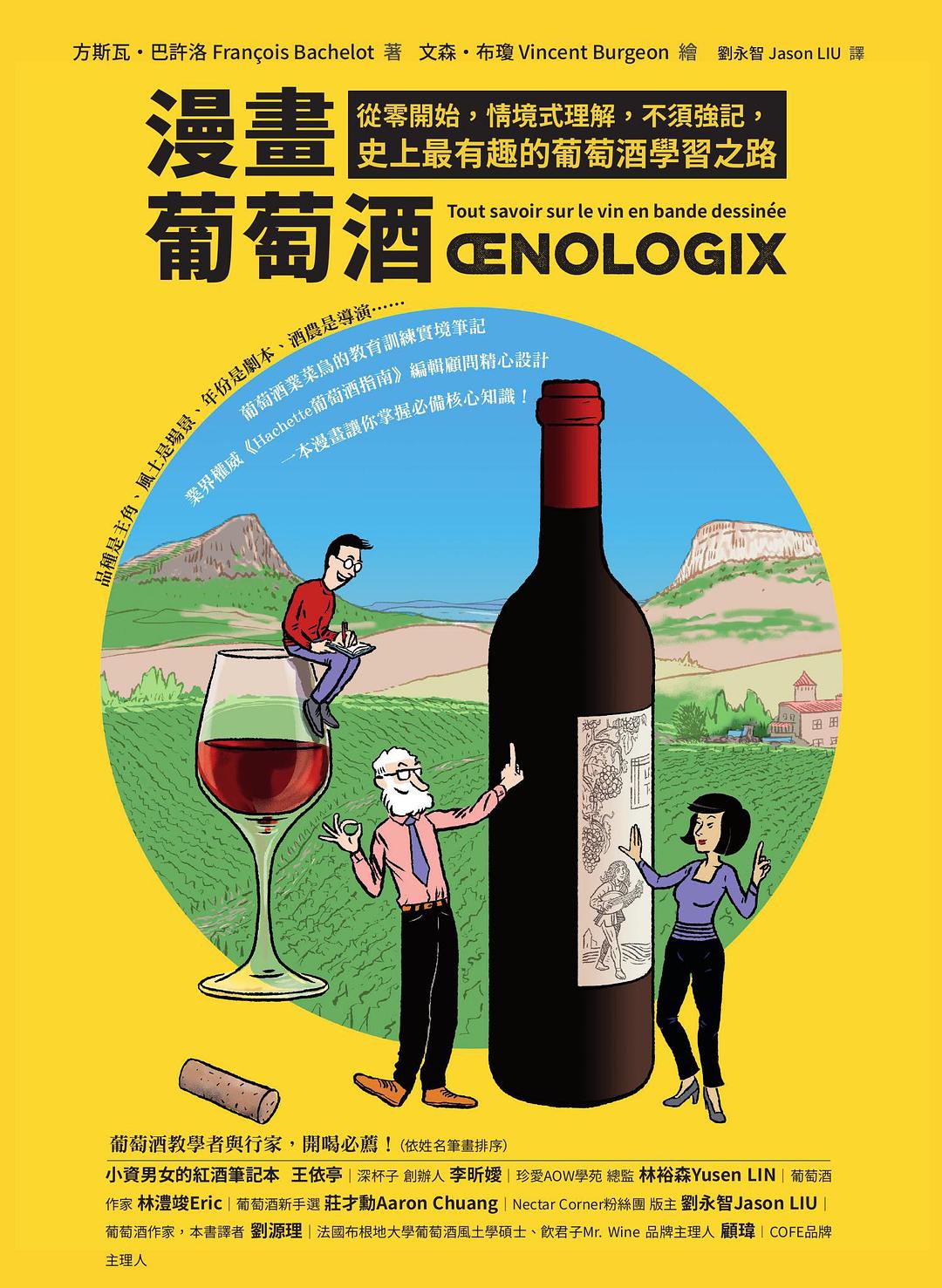 原文書名「ŒNOLOGIX」,指的是關於葡萄酒釀造與保存的一切學問。本書帶領讀者踏上具有教育意義且令人興味盎然的旅程:您將發現原來美酒的品飲一如電影欣賞般,那樣地令人回味無窮;而騎乘腳踏車徜徉葡萄園中,竟然有助於瞭解布根地葡萄酒的奧秘!